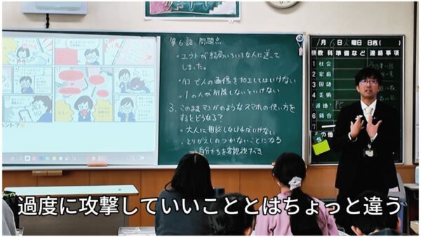 さらに生徒たちを唸らせたのが、生成AIによるフェイク動画を扱った第6話です。 友達の偽動画(ディープフェイク)を見つけた主人公が、善意で「これ偽物だから気をつけて!」と拡散した結果、逆に動画を広めてしまうという皮肉な展開です。