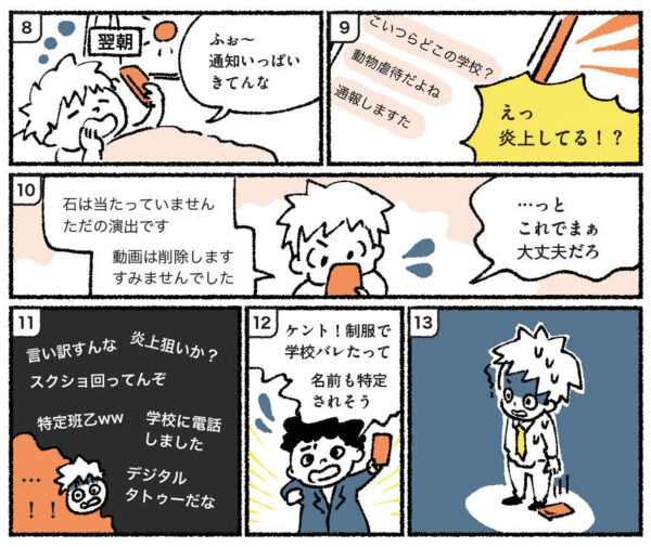 最初に取り上げたのは第5話『バズって炎上』。 「アヒルに石を投げる動画」を投稿して炎上した中学生の話です。