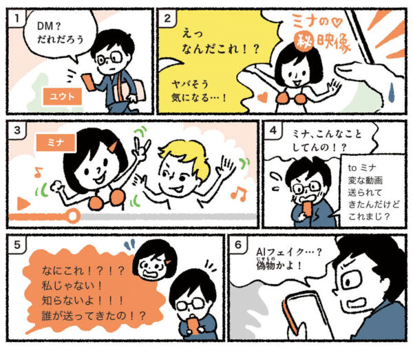 さらに生徒たちを唸らせたのが、生成AIによるフェイク動画を扱った第6話です。 友達の偽動画(ディープフェイク)を見つけた主人公が、善意で「これ偽物だから気をつけて!」と拡散した結果、逆に動画を広めてしまうという皮肉な展開です。